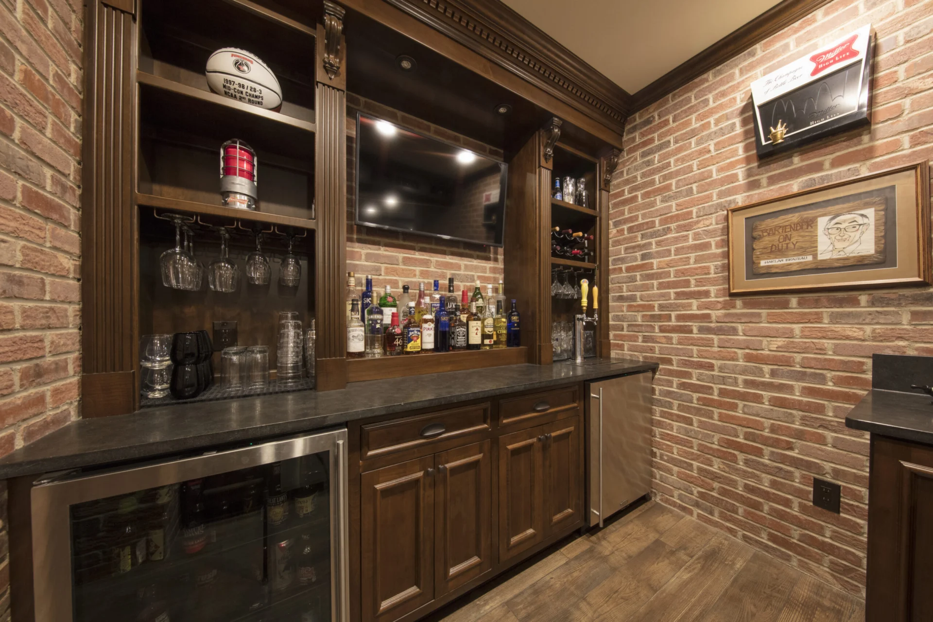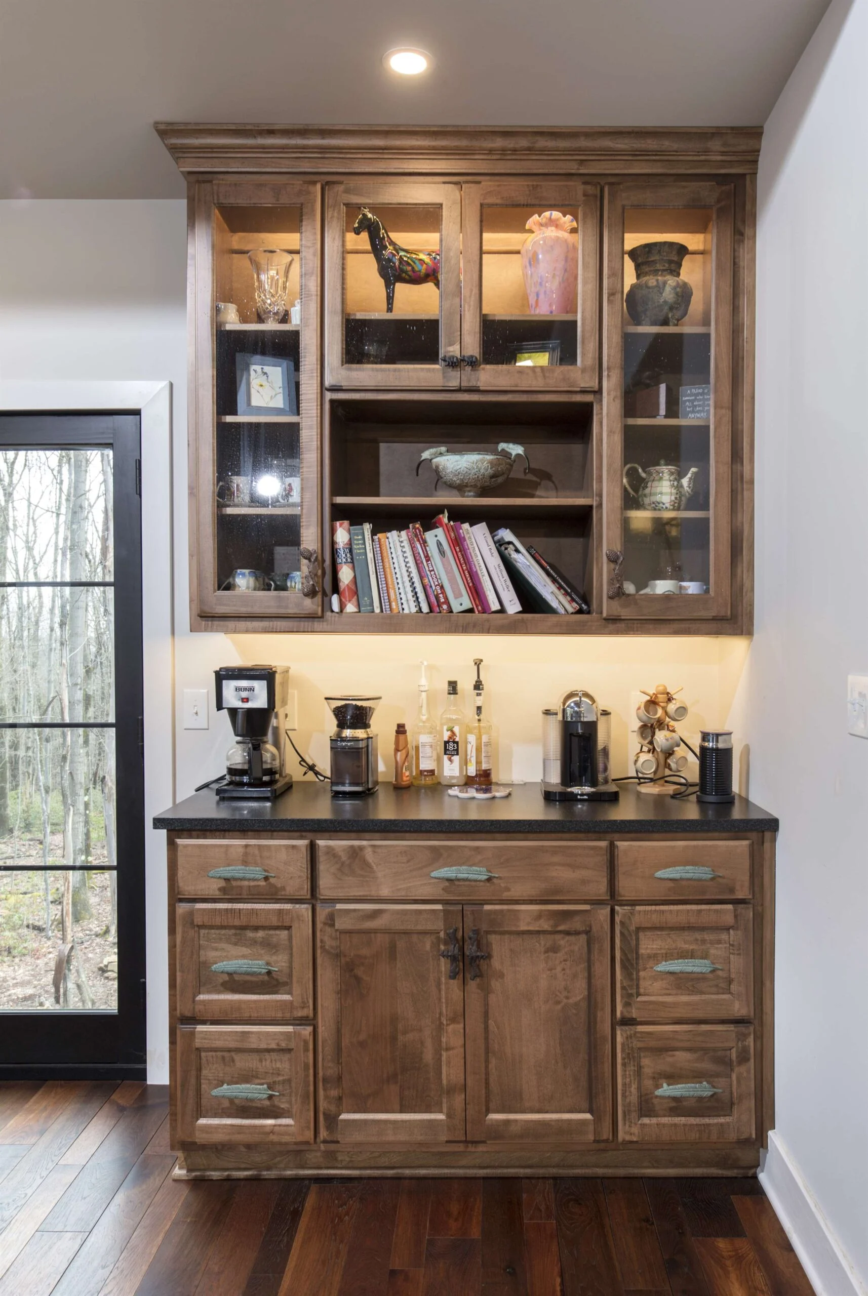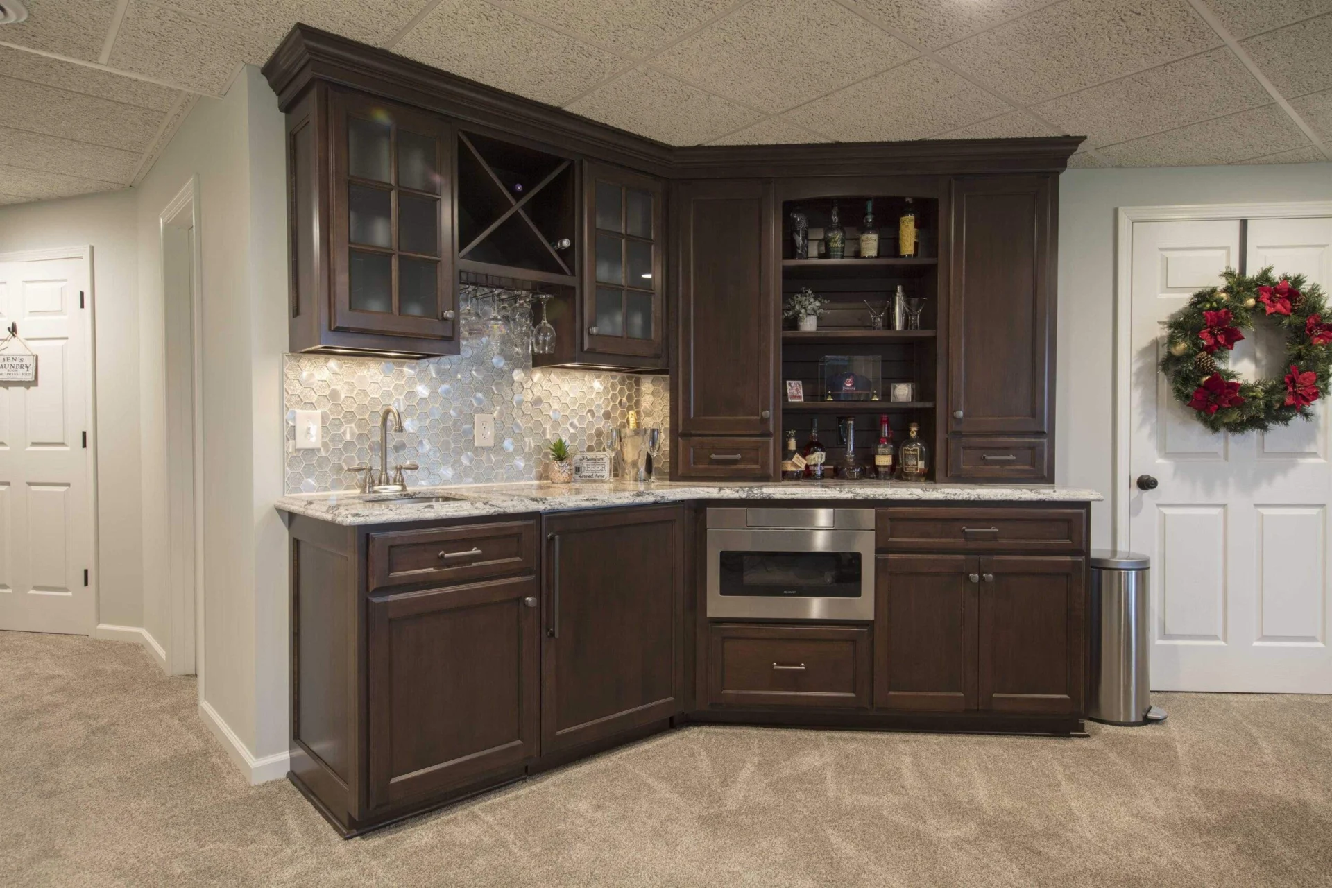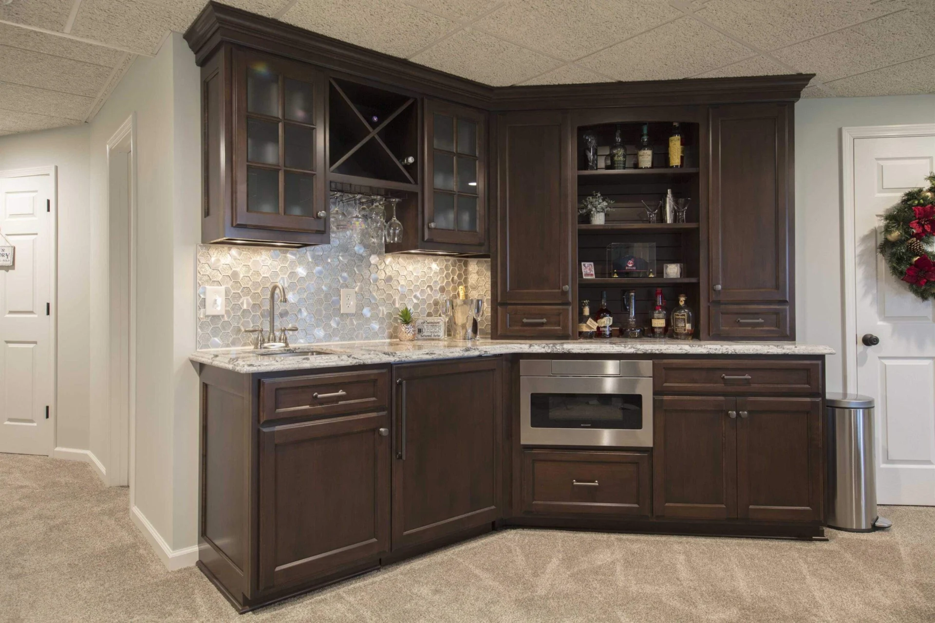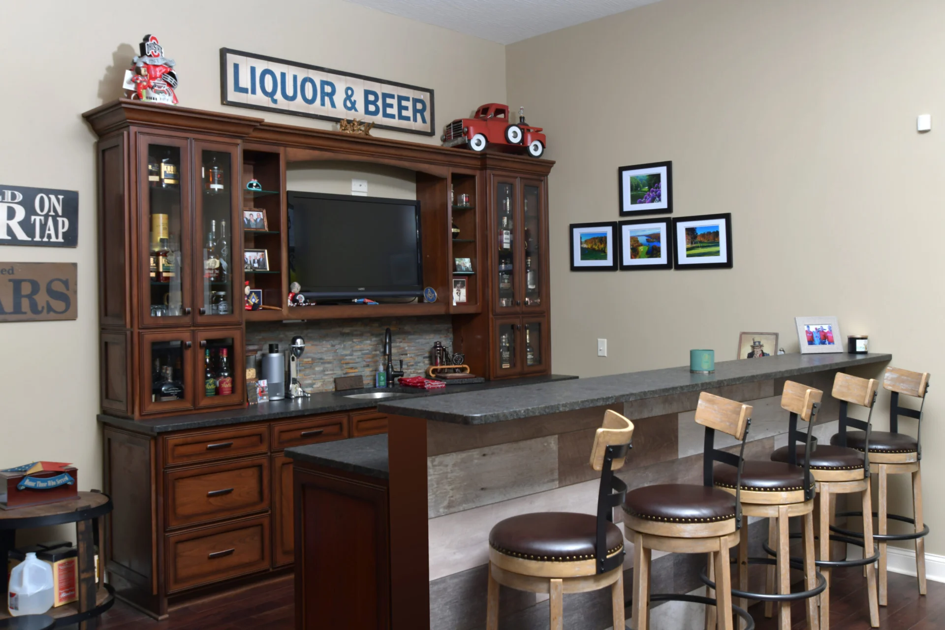 Accentuate your home bar with the help of High Point Cabinets! Add a touch of elegance and luxury with custom cabinetry. Your guests will be in awe the next time you entertain when you choose custom options from High Point. Accentuate your home bar with elegant Amish-made cabinetry. From custom shelving to full bar setups, our cabinets add luxury and functionality. Impress your guests with handcrafted designs that blend timeless quality with modern convenience.